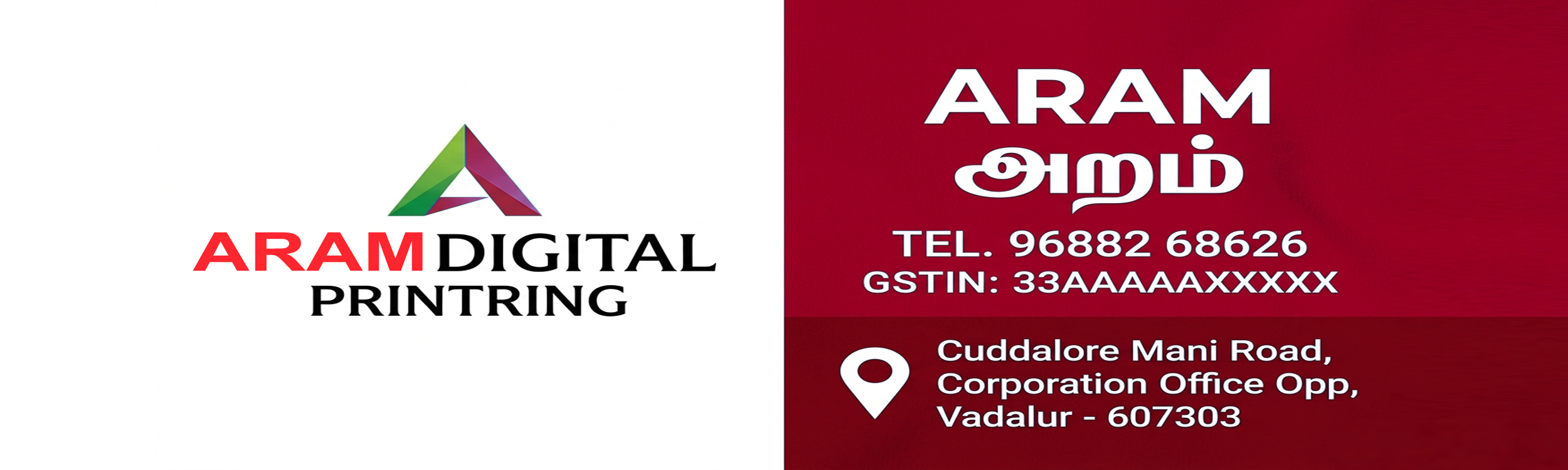வடலூர் மற்றும் அதன் சுற்றுவட்டாரப் பகுதிகளில் உங்கள் பிசினஸ் அல்லது வீட்டு விசேஷங்களை அடுத்த கட்டத்திற்கு எடுத்துச் செல்ல ஒரு சிறந்த டிஜிட்டல் பிரிண்டிங் நிலையம் தேடுகிறீர்களா? அதற்கு ஒரே நம்பிக்கையான இடம் Aram Digital Printing (அறம் டிஜிட்டல் பிரிண்டிங்). ஒரு பிசினஸின் முகவரி அதன் விளம்பரங்கள் தான். அந்த விளம்பரங்களைத் தரமாகவும், அழகாகவும் மாற்றித் தருவதில் நாங்கள் முன்னோடியாக விளங்குகிறோம்.