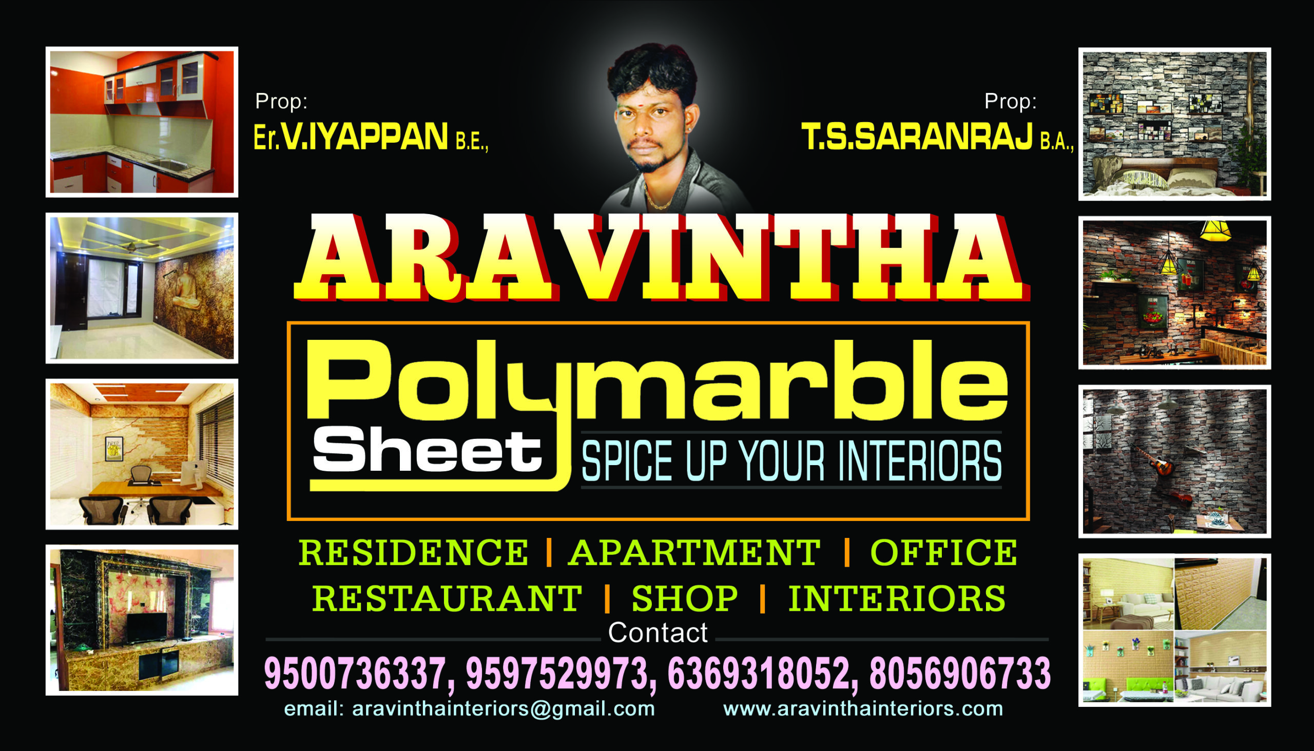 Backed by our expertise and commitment to quality, we offer interior solutions that not only beautify your spaces but also ensure practical functionality. From wall finishes to decorative designs, our Poly Marble Sheets are perfect for those who want to spice up their interiors with a premium touch. Trust Aravintha Interiors for reliable service, innovative designs, and exceptional products that transform ordinary spaces into extraordinary ones