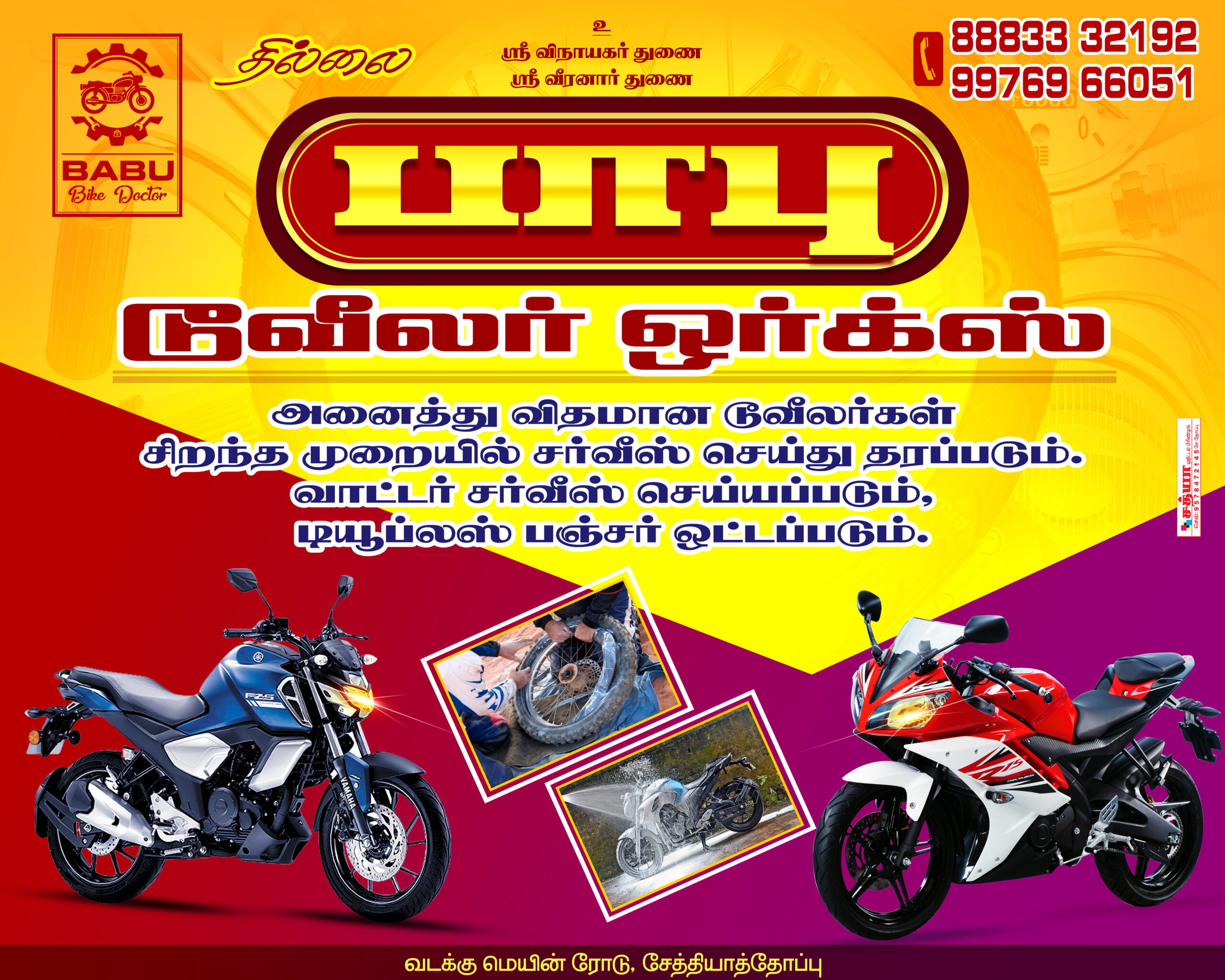 At Babu Two Wheeler Works, popularly known as the “Bike Doctor,” we understand that your motorcycle is more than just a vehicle—it is a vital part of your daily life. Located on North Main Road in Sethiyathope, we offer a comprehensive suite of maintenance and repair solutions designed to keep your bike in showroom condition.