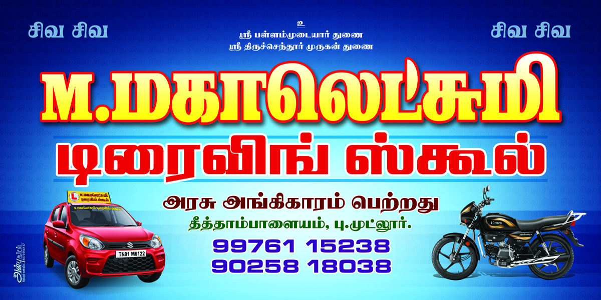 Mahalakshmi Driving School, we are committed to providing safe, professional, and reliable driving training for both beginners and experienced learners. With government approval and certified instructors, we ensure that every student gains the confidence and skills needed to drive responsibly on the road. From two-wheelers to four-wheelers, our practical and theory lessons are designed to make learning easy, effective, and stress-free. Our driving school focuses on discipline, safety, and personalized training to help you become a skilled driver in no time. Conveniently located in Thittampalayam, Puthur, we provide flexible timings and affordable packages to suit every learner’s needs. Join M. Mahalakshmi Driving School today and take the first step towards driving with confidence and independence.
