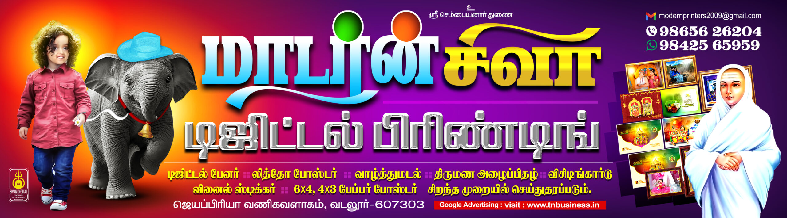 Modern Siva Digital printers Services :Flex PrintingSticker PrintingPoster PrintingPhoto PrintingCloth Printing,Modern Siva Digital printing Is the Best one of Vadalur 14 Yaers Experience and Four Branches Imported Machinery,Well Trained Graphic Designers Approve by : https://tnbusiness.in/