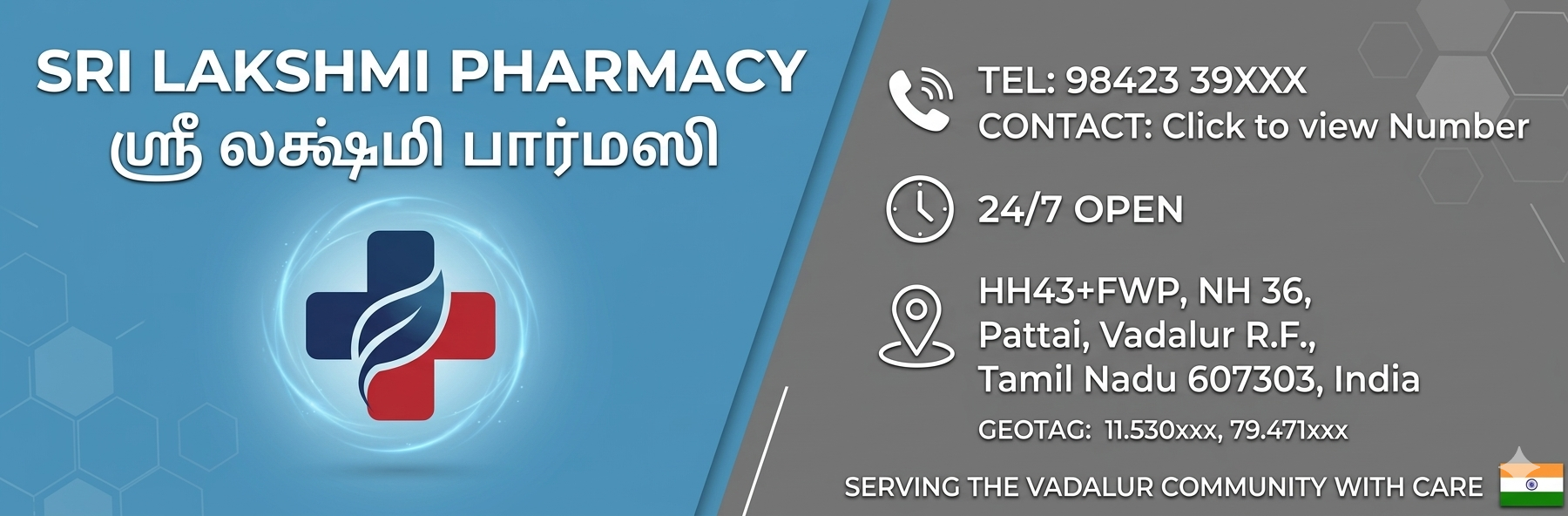 Trusted Sri Lakshmi Pharmacy: 24/7 Professional Medical Care in Vadalur!